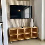 Estudio Com Piscina E Vista Mar은 TV가, 실내 온도 조절기가 마련된 객실을 제공합니다.